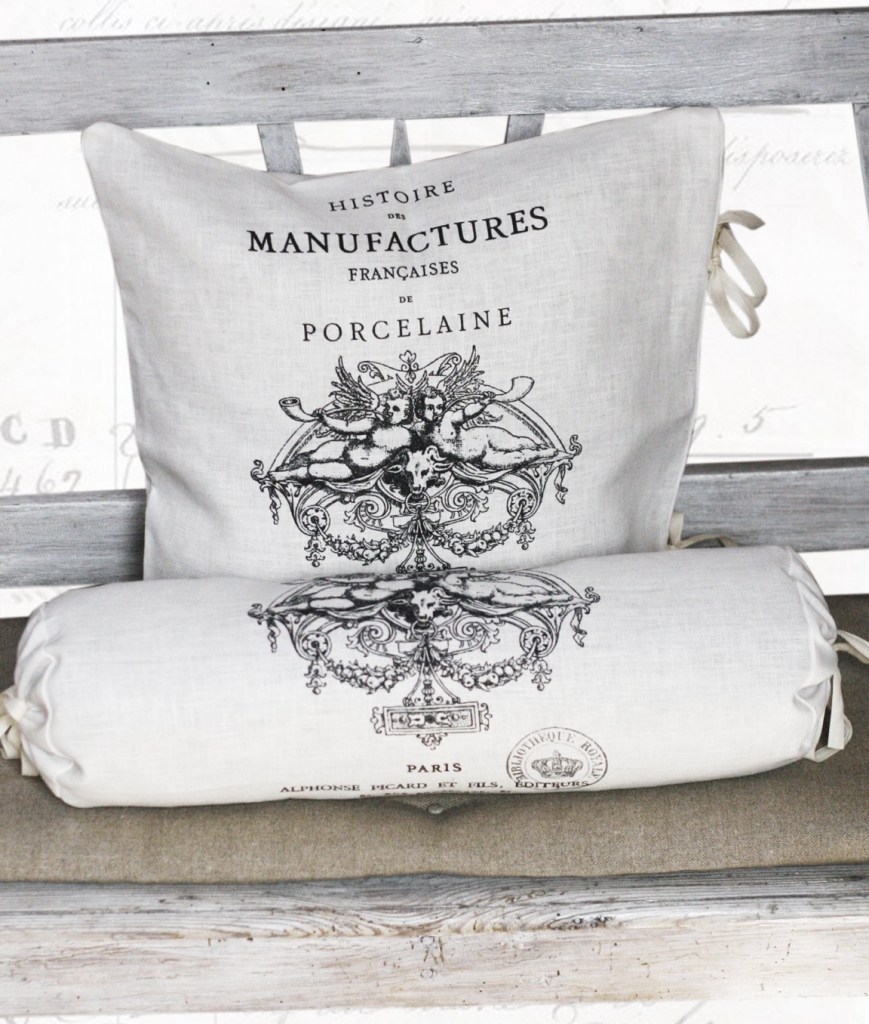 Wałeczek lniany to propozycja do wnętrza salonu, wykonany z 100% tkaniny lnianej zdobione nadrukiem z francuskimi motywami, wiązany z boku troczkami. Doskonale komponują się z poduszkami z tej samej kolekcji.