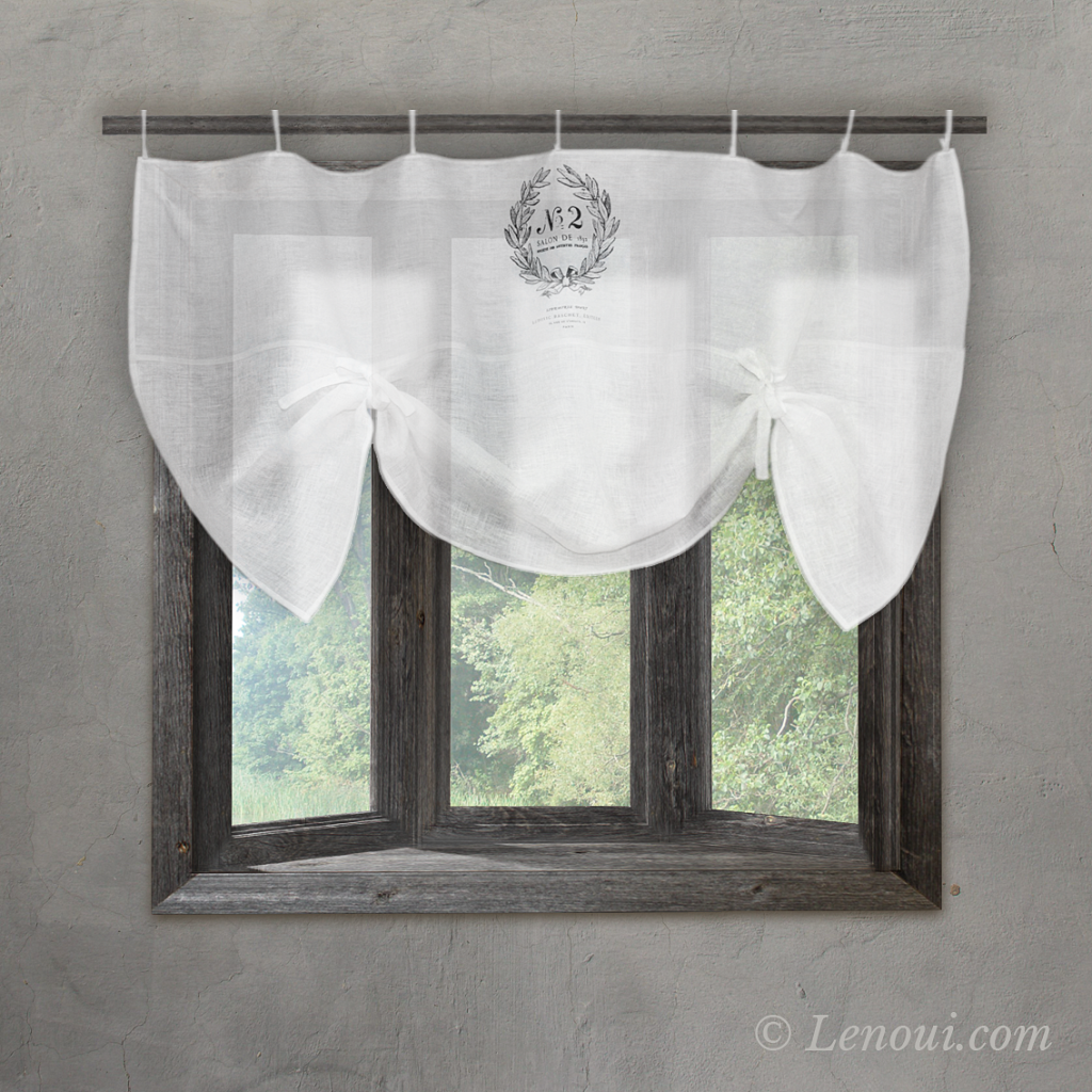 Zazdrostka wykonana z 100% tkaniny lnianej w kolorze białym, zdobiona nadrukiem z francuskim motywem stanie się elementem dekoracyjnym okna, nadając wnętrzu charakter prowansalski. Zazdrostka mocowana jest do karnisza za pomocą wiązanych troczków.