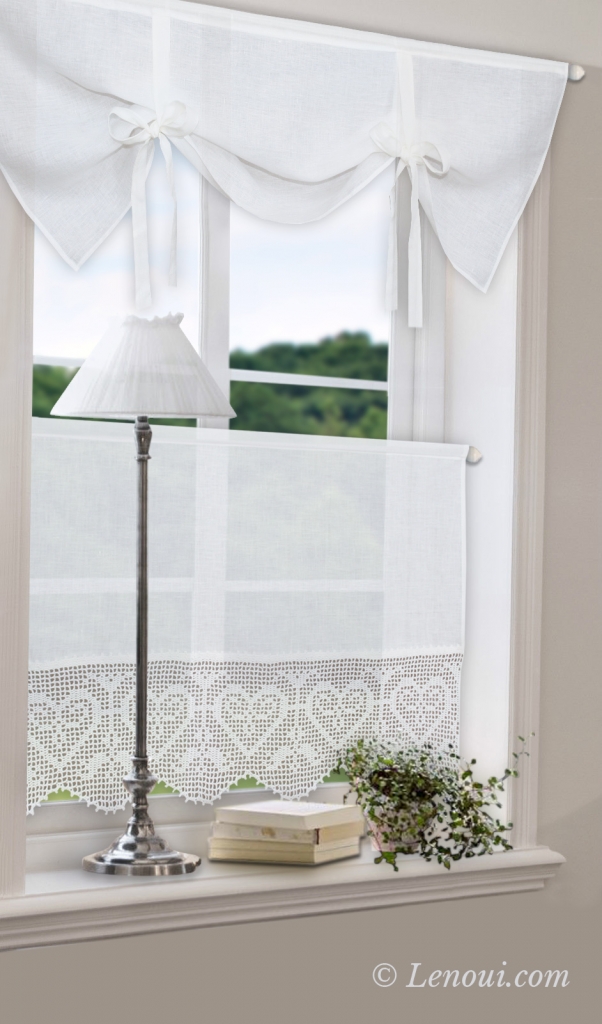 Dół zazdrostki zdobi ręcznie wykonana lniana koronka w tym samym kolorze