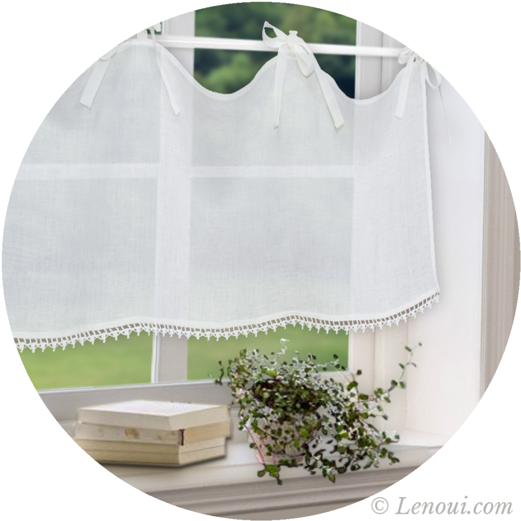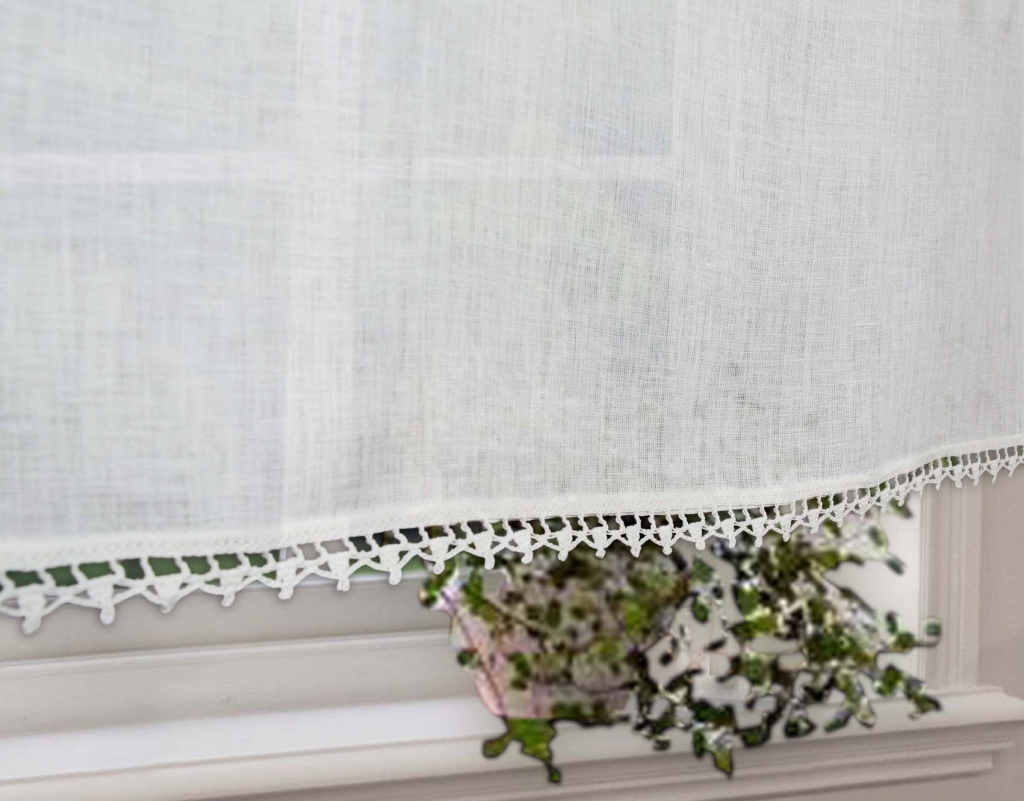 Dół zazdrostki zdobi ręcznie wykonana lniana koronka w tym samym kolorze